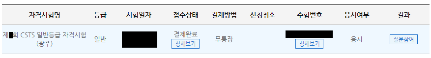 사이트 등록하고 자격증 접수하면 보여지는 등록내용(아래참고)