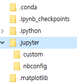 주피터노트북 폴더는 아마도 "사용자" 밑에서 찾을 수 있을것이다. 그 하위에 ".jupyter" 폴더를 찾는다.