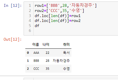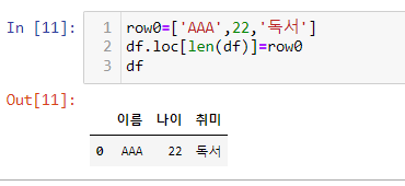 df를 확인 하면, 추가된 것을 알 수 있다. len(df)라는 것이 마지막 행을 지정하기 위한 요령이다.