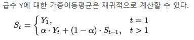 과거보다 최근의 값이 더 많은 비중을 갖도록 계산되는 방법 이라고함.