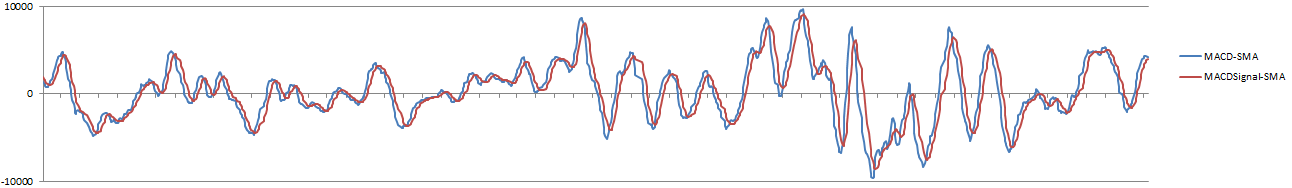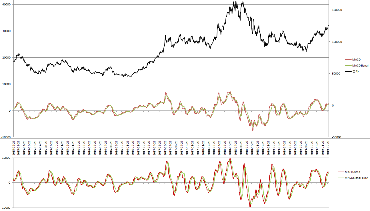 그럼, EMA(지수이동평균)대신 SMA(단순이동평균)를 사용해서 MACD를 계산하면 어떻게 될까?
