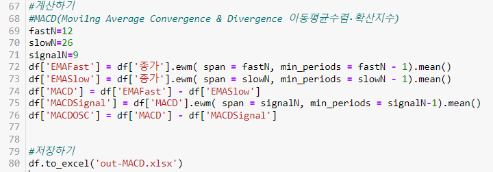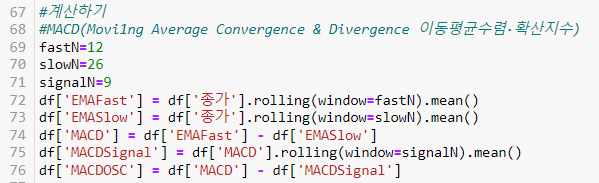 69-71행 : MACD에 사용되는 기간값의 상수 설정(전형적인 설정값)