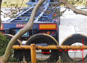 그나마 쉬운 운전석쪽 뒤 공간을 뒷바퀴폭 0.5~1개 여유로 맞춘다 생각하면 안전하겠다