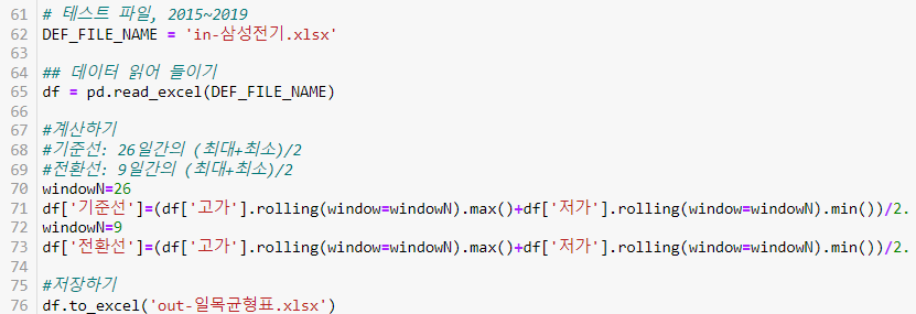 이번 (1)회에서는 기준선, 전환선을 해보고,