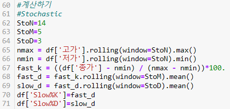 68행 : Fast%D계산( 결국 Slow%K 와 같음 되시겠다)