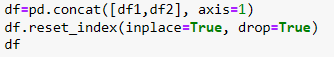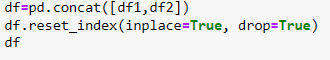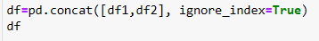 아래와 같이 concat()명령을 수행하면 결합된 형태의 df를 얻을 수 있다.