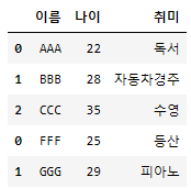 데이터 프레임을 합쳐야 한다면, concat() 명령이 준비되어 있다.
